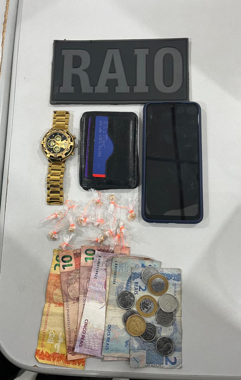 Dentre os objetos apreendidos com o homem estavam também um celular e um relógio dourado.